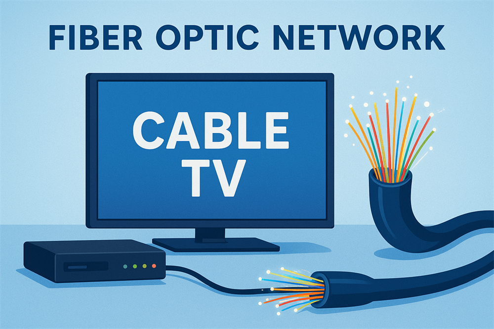 حال می رسیم به تلویزیون کابلی یا همان تلویزیون فیبر نوری. اینکه شبکه های تلویزیونی از چه طریقی دریافت شوند چندان مهم نیست. مهم، دریافت شدن شبکه های تلویزیونی است چه از طریق ماهواره و آنتن خاکی و چه اینترنت. تمامی این شبکه های تلویزیونی توسط مبدل های فیبرنوری قابل انتقال درون خطوط شبکه فیبر نوری ساختمان می شوند و به کابران و ساکنین ساختمان ارایه می گردند.