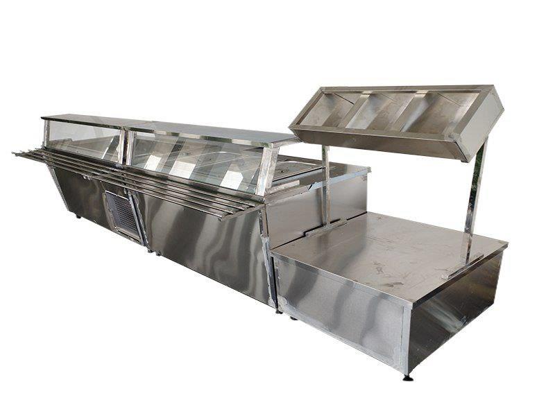 راه اندازی سلف سرویس نیاز به یکسری تجهیزات مهم دارد که لازم است به صورت مختصر با آن ها آشنا شوید. حتما می دانید که در سلف سرویس غذاها و مواد مختلفی وجود دارند بنابراین نیازمند تجهیزات آشپزخانه صنعتی زیادی خواهد بود. یکی از این تجهیزات کانتر سرد بن ماری است، همانطور که از نام این کانتر پیداست بیشتر برای محصولات و مواد غذایی سرد مانند ماست، سالاد، ترشی و سایر مواد غذایی کاربرد دارد. کانتر گرم بن ماری نیز یکی دیگر از تجهیزات مهم برای راه اندازی سلف سرویس محسوب می شود و کاربرد آن گرم نگه داشتن غذا می باشد. کانتر ساده برای نگهداری انواع مواد مانند نان و کانتر صندوق دار نیز برای دریافت وجه صدور فیش غذا کاربرد دارد. این کانترها با برق و گاز کار می کنند و قابلیت اتصال به گاز شهری را نیز دارند.