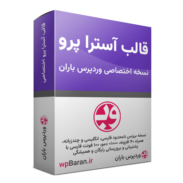 چهار نسخه از قالب Astra Pro فارسی در وردپرس باران آماده سازی شده است. کاملترین نسخه قالب آسترا پرو بیزنس است که شامل 1000 دمو آماده، 100 فونت فارسی، 40 افزونه هدیه، 30 روز ضمانت، پشتیبانی و بروزرسانی رایگان و همیشگی با امکان درخواست نصب رایگان و تحویل سایت آماده ارائه شده است. هم اکنون می توانید با توجه به نیاز خود کاملترین نسخه قالب یا نسخه های اقتصادی را از وردپرس باران تهیه کنید.